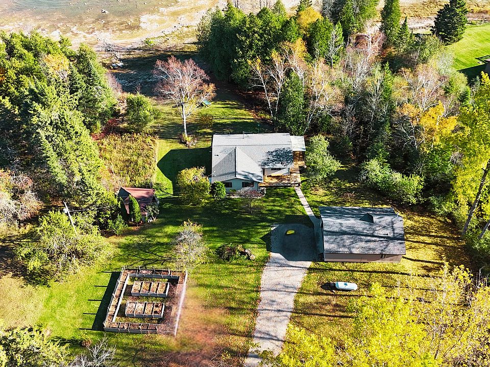 Lake michiganModern comfortFruit treesSurrounded by forestWrap-around deckDetached two-car garageSmart security