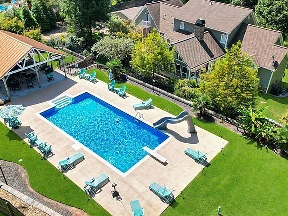 Discover resort-style living just minutes from Downtown Woodstock! This home sits on a beautifully landscaped lot with NO HOA restrictions on a quiet street shared with only two other homes, and boasts an incredible backyard oasis featuring a sparkling in-ground pool with a diving board and slide, landscape lighting, expansive patio spaces, and two HUGE covered pavilions-perfect for hosting large parties or enjoying relaxing family weekends. Plenty of parking space for vehicles, boats, an RV, and more. The home itself features hardwood floors throughout the main floor, an oversized Great Room, renovated Kitchen with custom cabinetry and granite counters, and a large Master Suite on the Main Floor. There's an additional Family Room/Den off the Kitchen that could be used for a home office, extra entertaining space, playroom, media room, and more. Upstairs includes 3 spacious bedrooms and 2 full baths. Tons of upgrades including electric window blinds on the main floor, outdoor landscape lighting, and even a built-in aquarium in the Family Room and Kitchen! With low-maintenance HardiPlank siding, a 9-year-old roof, and a 4-year-old HVAC, you'll have no worries when you move into this home-just relax and enjoy your little piece of paradise only 5 minutes from 575, 7 minutes to downtown Woodstock, and 9 minutes to the Kellogg Creek boat ramp on Lake Allatoona!