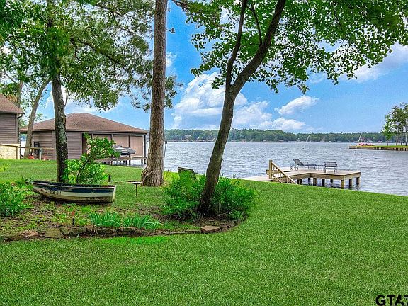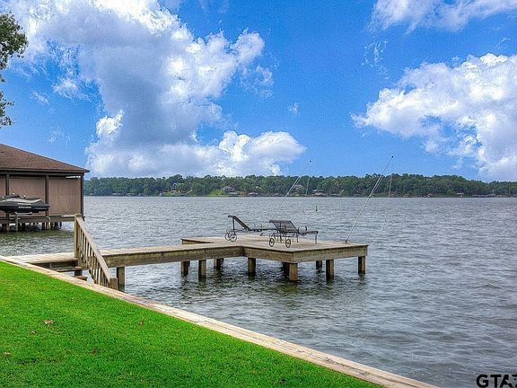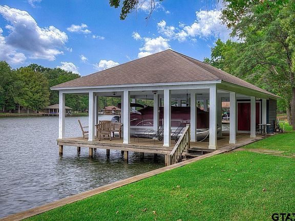 What everyone has been searching for! This gorgeous home with a guest house in the desirable Tall Tree Subdivision sits on an absolutely incredible lake lot with main lake views and over 180 feet of shoreline. The main home offers just under 1,800 square feet of living space, highlighted by a spacious family room with floor to ceiling windows showcasing the breathtaking water views. The large kitchen with dining area is perfect for entertaining. The split primary suite features a private en-suite bathroom, while two generously sized secondary bedrooms share an updated full bath. Above the oversized garage, the guest suite provides an ideal retreat for family and friends. With plenty of room to sleep multiple guests, it includes a full bathroom and kitchenette for added convenience. The outdoor area is truly a dream, offering plenty of patio space off both the main home and guest suite. The boathouse is perfectly positioned to take in the best views of the lake and includes two boat slips and one jet ski slip. A separate fishing pier adds to the waterfront enjoyment. Residents of Tall Tree Subdivision enjoy excellent community amenities, including a sports court, swimming pool, clubhouse, and boat ramps. This property has it all, prime location, exceptional amenities, and a rare opportunity for lakefront living. Don’t wait! This one won’t last long.