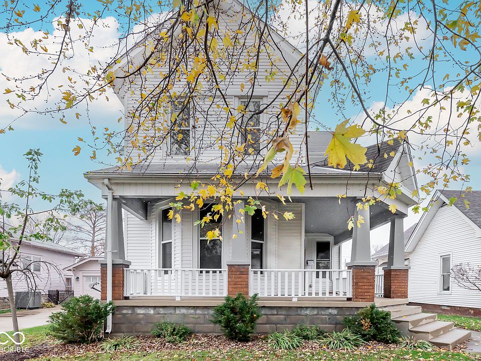 Stunning Turn-of-Century Two-Story home featuring a wrap-around porch and a rear garage with a spacious 896 SF that includes an additional small studio apartment or MIL Suite above for rental income! The home boasts original wood trim and baseboard including a beautifully handcrafted staircase and banister that have been meticulously maintained. With 3-4 bedrooms, 2 full baths, and approximately 3100 SF of living space which includes the garage apartment (which could be utilized as a 5th bedroom or home office), there is plenty of room to spread out. The property also offers formal living and dining rooms, a breakfast nook, and an updated kitchen with cherry cabinetry and stainless steel appliances. While the fireplace is decorative only, the unfinished basement provides space for a storm shelter or extra storage. Additional features include main level laundry, replacement windows, vinyl flooring throughout the main level, maintenance free vinyl exterior and a large upper-level bedroom measuring 16 x 27 with walk-in closet!Don't miss this rare opportunity to own a piece of history!