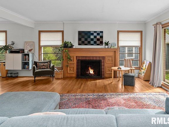 Charming all-brick ranch filled with warmth and character! Step inside to a spacious living room featuring beautiful hardwood floors and a cozy wood-burning fireplace—perfect for relaxing evenings. The bright, inviting kitchen offers ample cabinetry, a convenient pantry, newer appliances a comfortable eat-in area ideal for casual meals. Downstairs, the finished basement provides a wonderful extension of living space, complete with a bar for entertaining, a second wood-burning fireplace, a remodeled full bath, and a versatile office or potential 4th bedroom. You’ll also find plenty of storage throughout, along with both an attached and a detached garage—perfect for vehicles, hobbies, or extra workspace. Just blocks from the Duck Creek Bike Path, this delightful home blends comfort, functionality, and timeless appeal, making it an ideal place to call home.