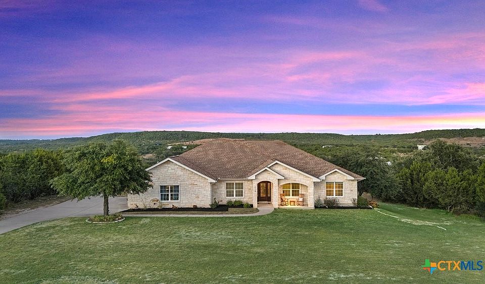 $15,000 Buyer Incentive! Refrig/Dryer/Chickens/Chicken Coup Convey! Welcome to 510 Wagon Wheel! It’s hard to know where to start w/ this home because it has so many incredible features to highlight. From its prime location in the breathtaking Texas Hill Country, to the tranquility & peacefulness of the property & community, to the stunning panoramic views of the hill country, to the well-thought-out open floor plan that fixates on those views, this home truly has a lot going for it! Located on 1.42 acres in the gated community of Whitewater Springs, this home offers the perfect balance of privacy, space, & connection w/ nature. The home sits at the end of a quiet cul-de-sac, offering an extra layer of peace & seclusion. The location is ideal! You’re just far enough out to experience true Hill Country serenity, yet still close enough to enjoy every day conveniences. You can be at HEB in about 20 mins, & you are surrounded by all the best lakes that Central Texas has to offer! You can be at Inks Lake in about 40 mins, Lake LBJ in about 45 mins, Lake Buchanan in about 50 mins, & Lake Travis in about 1 hr. Whether you’re after quiet mornings w/ nature, afternoons on the lake, or evenings under starry skies, 510 Wagon Wheel delivers that, & more! Add in family-friendly amenities (lake, creek, community pool, park, playgrounds, etc.), a thoughtful layout, & breathtaking surroundings, & it’s easy to see why this home stands out. The interior of the home comes w/ many highlights as well such as the huge kitchen w/ built-in oven, microwave, & gas cooktop, granite countertops, beautiful picture windows in living & dining areas, high ceilings, stone interior walls, beautiful textured tile, cozy fireplace, his & her vanities, & much more! The 3-car garage w/ spacious work areas will surely be appreciated & the 3 level back patios that fixate on the views will surely impress! LOW TAX RATE at 1.33% keeps costs down! This home is a must see! Don’t miss this Hill Country retreat!
