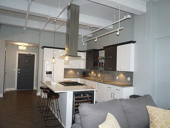 Absolutely beautiful residence in the central business district of downtown Buffalo. Renovated Loew's Theatre Warehouse at 510 Washington Street. Walk to work, restaurants & the theatre! There are only 12 residences in this 7 story mixed use building on the historic 500 block of Main Street. This place has character, style and a sleek minimalist look. Come and see our high end BRAND NEW Whirlpool & Bosch appliances (Counter depth Refrigerator with ice maker, GAS RANGE with Hood, Microwave drawer, dishwasher, Wine refrigerator, garbage disposal), FULL SIZE In unit laundry with gas dryer, LED crystal chandelier lighting fixtures, Fireplaces, Dual vanity sinks in master baths, Natural Quartz countertops and Candlelight cabinetry with soft close throughout. But there is MORE!! Beautiful lobby, Air conditioning, keyless entry, security camera app, heated front sidewalk, loading & unloading zone for tenant use out front. One parking space per residence at the Mohawk ramp is included in the rent as well as a storage locker in the basement. Water, garbage & common area maintenance also included. Cats OK, with fee. No smoking. All potential tenants must submit an application and pay a one time $40 fee for the tenant screening service. Owner pays water, garbage & common area maintenance