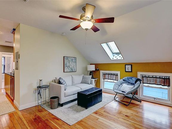 Walk into this beautiful third floor Fox Point condo and be amazed at all the natural light that flows through the multiple sky lights and the great use of space! Newly refinished hardwood floors flow through the large living room that has a separated nook space, which is perfect for an office, all the way through to the gorgeous eat in kitchen with dark granite counters, solid wood cabinetry, and stainless steel appliances. Two generously sized bedrooms are located off the kitchen, each with their own skylights, one with hardwood floors and the larger bedroom with plush wall to wall carpeting. Newer in-unit stackable washer and dryer adds convenience to daily living, while the oversized newly tiled walk in shower makes you feel like you're at a spa! Bonuses include two unassigned off-street parking spots, central air, updated windows, private shared patio, and secured basement storage! Take a stroll and explore India Point Park, Wickenden St and everything that the Fox Point neighborhood has to offer. Conveniently located to highway access, making commuting a breeze.