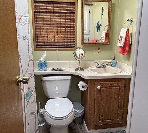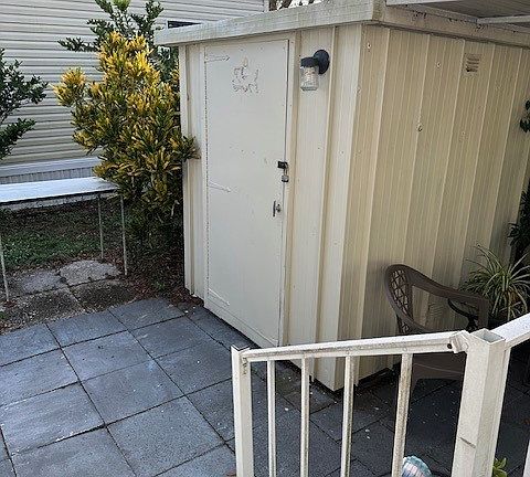 This one bedroom, two bathroom is move in ready. It has new flooring in the sunroom. The AC and roof is around 4 years old. The golf cart comes with the purchase of the home.