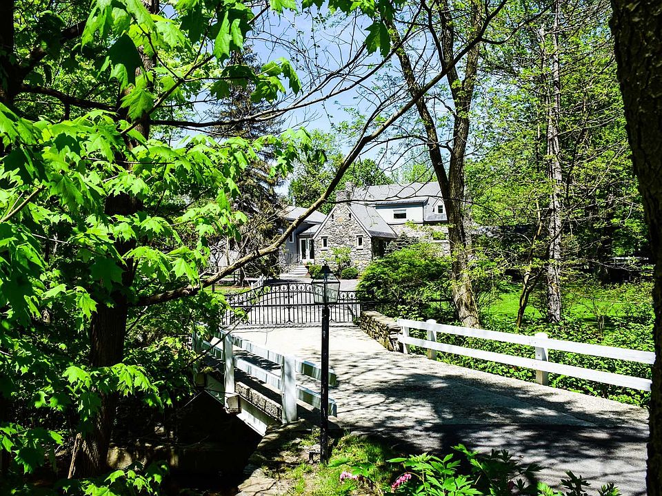 When the gates slide open over the stone bridge, magic begins to unfold. Protected by the cascading Punsit Creek, Crow Hill Manor reveals hidden delights at every turn both within the gracious home and as you wander the estate's 42 acres. Perfectly expanded into the epitome of the country retreat, the original 1932 stone house features a striking modern great room with stunning chef's kitchen addition that frames the view over the gardens to the 65' swimmer's pool beyond. A brick carriage house converted to a stunning two bedroom guest house beckons friends to visit. Woodland trails wander beyond the five bridges and the inspiring three season writer's studio is lodged next to the deep swimming pond. An additional three car garage with fabulous one bedroom apartment completes the buildings. The main residence has been wonderfully reconfigured to include a main floor media room and master bedroom suite in addition to the modern great room, and there are three ensuite guest suites, a complete wine cellar and office space, all air conditioned and ready to be enjoyed. Nestled into the best area of Spencertown, this Columbia County estate puts you in easy reach of Hudson and the Berkshires and is an easy two and a half hours from midtown NY. Must be experienced to fully understand the magic.