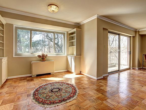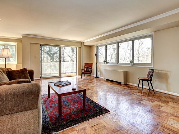 SPACIOUS LIGHT & BRIGHT CORNER UNIT 2 BR & 2 BA CO-OP w/1300 sq. ft. of living space. LR & DR leading to balcony overlooking Crescent Trail & Kenwood Cherry Blossom Trees. Kit w/upgraded applis, retro BA''s. New windows, freshly painted, crown moldings & refinished HDWD flrs. All this + one car gar.+ additional off st. pkg.+ storage.Close to 2 Metros,shops & more! Co-op fee Pays all incl. RE taxes.
