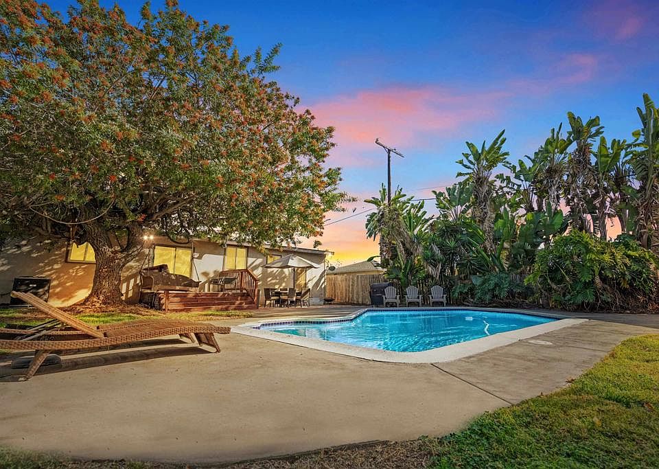 This charming single-story home offers 4 bedrooms, 2 bathrooms, and 1,700 sq ft of comfortably designed living space. Situated on a quiet, non-through street in a desirable neighborhood, this property is perfect for families, entertainers, and those seeking a move-in-ready home. Step inside through the double doors entry to find an open floorplan with an inviting and practical flow, featuring an extended family room with vaulted ceilings, a cozy fireplace, and beautiful wood laminate flooring throughout for a clean and consistent look. The updated kitchen boasts granite countertops and high-end stainless steel appliances. A remodeled second bathroom adds a modern touch, while dual-pane windows, a newer roof, central air with a smart thermostat, and an indoor laundry room provide ultimate comfort and convenience. The spacious backyard is a true highlight and one of the main selling points of this home, offering endless opportunities for entertainment and relaxation. Enjoy the pool with San Diego’s beautiful weather, and take advantage of the mature landscaping, complete with a beautiful tree for shade and charm. A newer shed is also included, providing additional storage. Also worth mentioning is the additional 1,220 sq ft of land directly behind the vinyl fence. This untapped space, which is part of the property, can be transformed into an extension of the yard, potentially featuring a sport or pickleball court, or added space for an additional dwelling unit. This home is located just minutes from Downtown La Mesa, a hidden gem filled with delicious restaurants, cozy coffee shops, and family-friendly events like the Farmers Market and Oktoberfest. Commuters will appreciate quick access to the 125 and 8 Freeways, while families will love being within walking distance of Lemon Avenue Elementary.