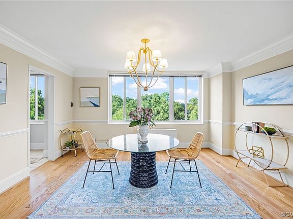 Wonderful corner unit in the 5100 Monument Condominiums with 3 bedrooms, 2 full baths & almost 1600 square feet. Airy & bright, this 5th floor condo is a private perch with treetop views of Monument Avenue. The marble-floored entrance hall leads to spacious, open formal rooms with hardwood floors, multi-member crown molding & lots of natural light from multiple large windows; remodeled eat-in kitchen with granite c-tops, tile backsplash & newer appliances. A handy butler's pantry connects kitchen to foyer & offers granite c-tops, pantry & storage closets. 3 nicely-proportioned bedrooms with new carpet & 2 updated tile baths, including a spacious primary with walk-in closet + additional closet & ensuite bath. Amenities include 24-hour security, elevator, recently refreshed lobby, community room/library, exercise room, 2 parking spaces, rooftop deck, bike storage area & beautiful pool. Monthly fee covers all utilities except internet. Super convenient location just over the Henrico County line, close to Willow Lawn shopping, restaurants & other city attractions.
