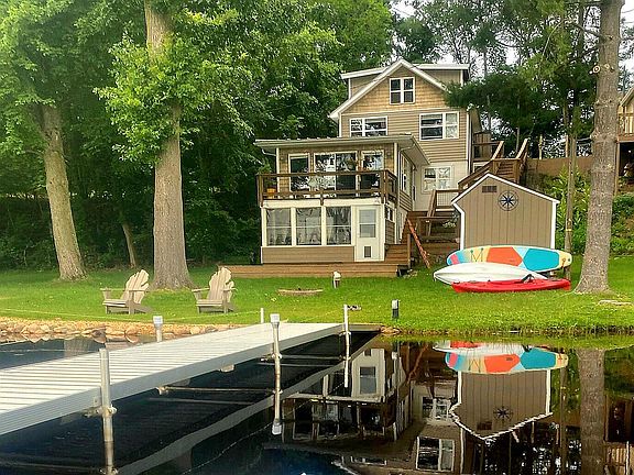 Looking for peace, nature and serenity? Pine Lake is your destination! This meticulously maintained 3 BD, 2.5 bath home spans over 1,600 sq. ft., offering lake views from every room. The chef's kitchen boasts Kraftmaid cabinets, new refrigerator, tile backsplash, quartz countertops, heated tile floors and an 8' island which anchors this space. Open concept into the living area make entertaining a breeze. Lower level includes a family room, full bath, storage and a 3-season room with custom weather covers. Highlights include a new W & D, lighted walk-in pantry, generator wiring, new water heater, safety lighting on freshly stained deck steps and an 8' X 14' shed. Enjoy the Tandem Perception Kayak, Aqua Thruster and other water gear. Experience breathtaking sunsets/rises from your deck or lakeside beach seating area. Are you ready to fish, go boating, canoeing and kayaking? This sanctuary awaits! This 50-acre spring-fed private lake, 40' deep, with lake owners also owning 125 acres adjacent to the lake. Schedule a showing today!