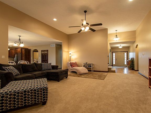 Beautiful 4 yr old smoke free/pet free home located in the family friendly Idle Creek Golf community. 5 Bedroom, 3 ½ bath, 3 car garage. Well maintained, clean and has plenty of upgrades including, granite counters in kitchen and all bathrooms, custom cabinets with soft touch closure, stainless steel appliances and natural stone flooring. Master bedroom and laundry are on the main floor, with 3 beds and bath upstairs and one bed and bath downstairs. A perfect fit for all of your family’s needs: fully finished basement where kids can play or can be used as a wo/man cave, open concept main floor allows for family to eat together and is a nice area to entertain. Customized wood coverings and room darkening blinds. Fully landscaped exterior with a drip irrigation system. Additional perks include a 5-person hot tub and a Goalrilla basketball hoop. Call Carrie Smith @ 812-243-2029 for a private showing.
