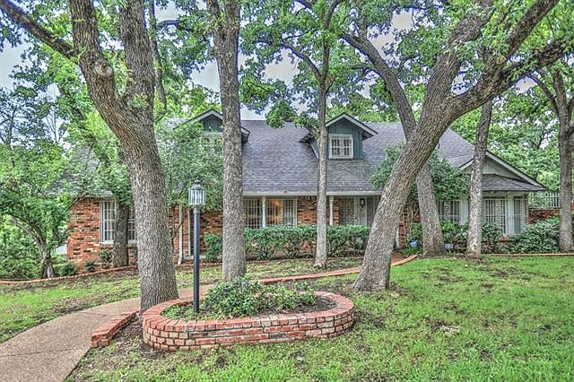 WALTER'S ESTATE sitting on a hill w privacy galore. Original owner, 2 story w brick fenced courtyard & pool. Formal Liv & Dining + Den w fireplace. Cabinets & updated kitchen + large utility room. 2 bed and 2 bath down, 1 bed & bath up, & huge room (3rd liv w alcoves)(could be split for extra rooms). Greenhouse, tool house, pool house, storage house in back. All gated except for the side entry 3 car gar under home. Versatile liv & many features.
