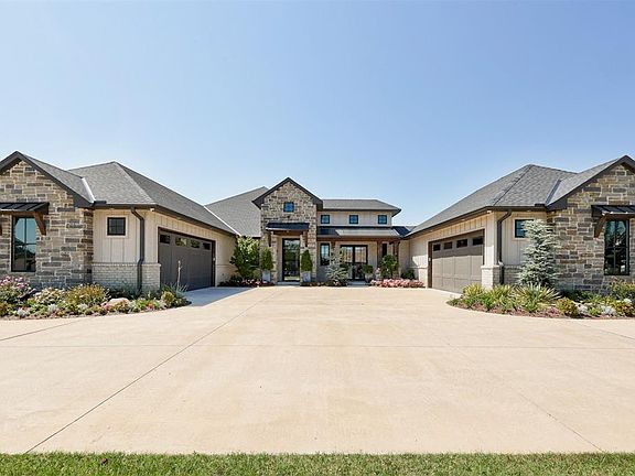 STUNNING Modern Farmhouse in coveted Black Oak at Iron Horse Ranch. Sitting on a spacious corner lot with amazing landscaping gives this home such lovely curb appeal. The unique wrap around front exterior discretely hides the TWO two car garages. A welcoming entry beckons you into the fabulous great room with amazing natural light; coffered ceiling; a floor to ceiling stone fireplace; and stunning view of the backyard oasis. Gorgeous wood floors adorn all the common areas of the home as well as the primary bedroom. A cozy dining space sits just off the kitchen, while the massive island offers two bar seating areas. The kitchen would make a pro-chef swoon with a commercial side by side frig/freezer; Thermodor 6 burner plus griddle cooktop & double ovens; farm sink; tons of storage & prep space and a walk-in pantry with coffee bar. The primary bedroom suite has a fireplace and spa-like ensuite bathroom with two vanities; soaking tub; shower with two shower heads and a bench seat; and two walk-in closets, one with a secret door into the kitchen pantry for your midnight munchies! There is a cozy office tucked away near the Primary bedroom suite for a quite space to work, read or craft. Three secondary bedrooms all have their own bathroom and their own thermostat. One of the secondary bedroom suites has direct garage access and back yard access creating a great multi-gen setup. Get ready to be everyone's favorite party house with the MASSIVE bonus room with wet bar PLUS a 13 seat theater room. The crowning glory of this magnificent property is the backyard oasis with sparkling swimming pool, hot tub, and outdoor kitchen. All the living areas wrap around the pool/courtyard creating a serene, private space to relax and regenerate. Outside TVs stay. Theater room projector stays. Schedule your private tour today!