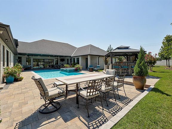 Backyard oasisSparkling swimming poolMassive islandHot tubAmazing landscapingOutdoor kitchenCorner lot