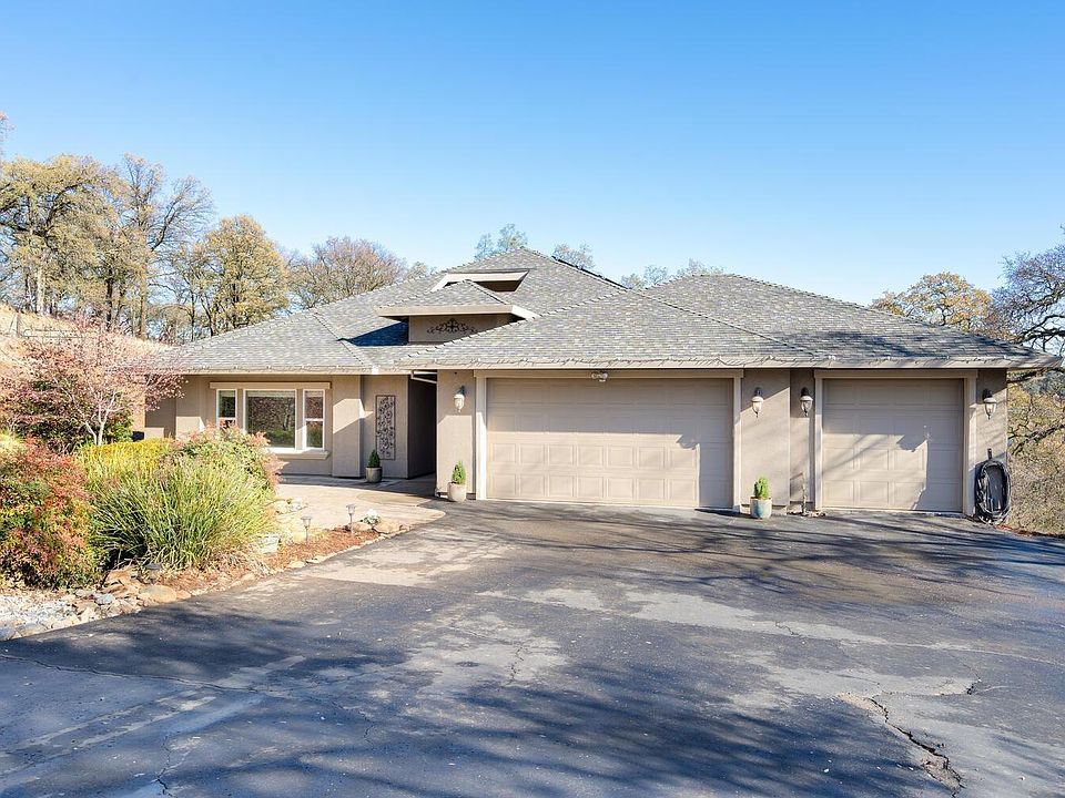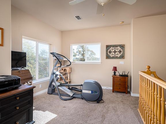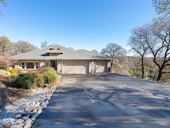 Electric iron gate welcomes you as you drive up to this stunning 3,780sf home set on 5 acres. Beautiful custom front door greets you as you enter into the spacious floor plan showcasing high ceilings, whole house fan, gas log fireplace & picture windows overlooking the incredible view. Granite kitchen features an island sink, butler's pantry, KitchenAid stainless steel appliances & new Wolf gas cooktop updraft fan. Primary suite has a loft that would be perfect as a home office area, outside deck access, gas log fireplace, jetted tub, 2 walk in closets & stall shower. Travel downstairs & find a separate family room, bedroom, full bathroom, climate control wine storage room & bonus area that would be a great area for games. Take in the magnificent views while relaxing out on the covered back deck that has a wood burning fireplace. Enjoy having a new infinity edge hot tub, updated landscaping bridge & water feature, solar, RV/boat parking & extra deep 3 car garage workshop.