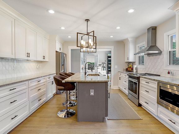 Welcome home! This luxurious, newly renovated private retreat is for rent December 1st. The beautiful SIX bedroom, FOUR bathroom home has a fully finished basement and a carport garage on .65 acres of flat, fenced land. Each detail has been meticulously crafted with custom high-end designer finishes. Step inside to your open foyer and be greeted by an eat-in gourmet kitchen with custom cabinetry, a large prep island and stainless steel appliances. Overlooking the picturesque backyard, it opens to a dining area and cozy living room centered around a wood burning fireplace. As if that's not enough on the main level, there is a fully finished 12x24 sunroom perfect for reading, relaxing or hosting AND a bedroom/office with a full ensuite bathroom. The home boasts beautiful natural light through all new energy-efficient windows in addition to perfectly positioned recessed lighting. Upstairs find four bedrooms, with each bathroom adorned with high-end designer tiles and beautiful vanities. The primary suite has an incredible walk-in closet with built in storage (and windows!). In the basement you'll find a useful recreational space/play room, a legal bedroom and ensuite bathroom, a spacious laundry room and a nice storage closet. The home also has a beautiful Trex deck and incredible outdoor entertaining space with hardscaping that includes a fire pit. Do you need more? Well, a very large shed stays that is currently being used as a gym! The home is also perfectly situated next to a park and is convenient for commuting. You will be hard pressed to find another beautiful, relaxing oasis like this so close to the city!