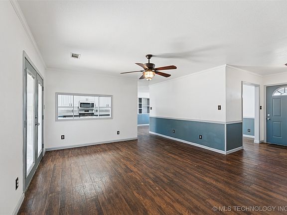 The two-car garage provides ample space for parking and projects, and you’ll have added security with an F5-rated above-ground storm shelter for peace of mind during storm season. Just a few minutes from Tulsa.