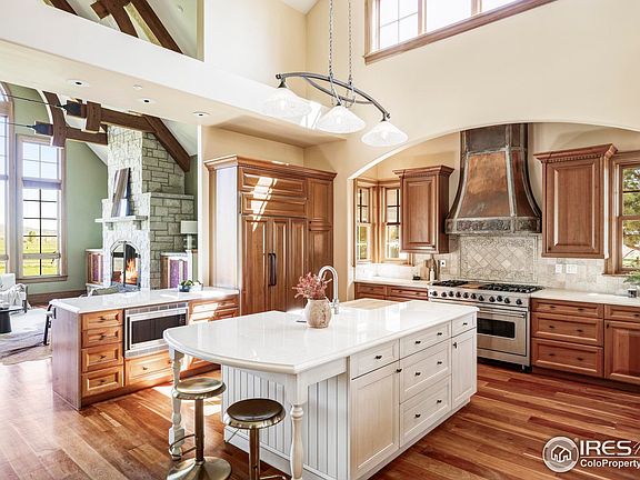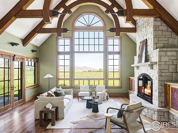 Welcome to a truly one-of-a-kind property, inside and out. Upon entrance through the gate, a tree-lined drive sets the tone -its canopy lush and vibrant in both summer and fall. The circular driveway makes the arrival all the more elegant. As you approach, you'll also notice the fantastic mountain vistas and serenity this property offers. Sitting on just over five acres, this custom-built home, designed by renowned architect Kyle Callahan, is truly elegant, with an emphasis on nature. Expansive windows throughout flood the home with rich, golden light and offer magnificent views of the meadow and mountains-you may never want to leave. The heart of the home is a gourmet kitchen, which overlooks the spacious living room featuring soaring ceilings and a picture window. The main-floor primary is a true retreat, featuring a luxurious, spa-like bath and amazing views. For convenience and privacy, each bedroom has its own bathroom as well. Additional features include two office spaces, a large sunroom, a mother-in-law suite, and a heated/cooled studio above the detached garage. There are heated floors and five fireplaces for extra winter comfort inside, while a built-in grill makes summer entertaining seamless, both indoors and out. You'll also find an attached 2-car garage, a detached 2-car garage, and a 2,100+ square foot barn-perfect for horses or extra storage. Located in the gated and private Caribou Springs Ranch community, you'll enjoy exclusive amenities such as a pool, spa, tennis court, and over five miles of multi-purpose trails to explore. Boulder and Lyons are also less than 20 minutes away for shopping and dining. This is a dream property and a one-of-a-kind opportunity to own a piece of Colorado. For a full overview of this incredible home, see more details here: