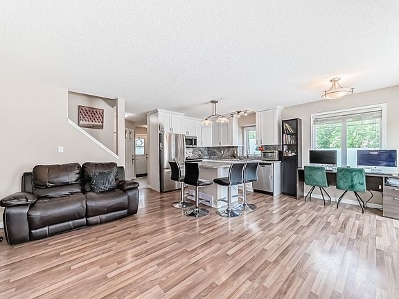 This exceptional end unit is located in a fantastic complex and is in excellent condition. The property features a spacious foyer that leads to a bright great room with a corner gas fireplace. The kitchen is equipped with updated cabinets, sleek countertops, a large center island that provides additional storage, and modern stainless steel appliances. The dining room is bright and airy, as a result of the end unit having extra windows. Additionally, the sliding doors provide access to a deck and a larger, fully fenced backyard, which includes a newer storage shed. On the upper level, the property offers three generously sized bedrooms, a full bathroom, and a master suite that features a large closet along with a well-appointed three-piece ensuite that is filled with natural light. Located in a beautiful and family-friendly community, and within walking distance to many amenities, including shopping, dining, and the Four Seasons Park