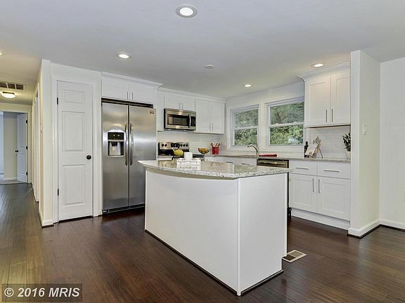 Completely RENOVATED inside & out! Featuring bamboo flooring, decorative lighting& open floor plan. Gourmet kit w/ ss Frigidaire appls, granite counters, subway tile backsplash, island & custom cabinetry. Spacious MBD w/luxury bath w/subway tile& rooftop deck. LL family rm, 4th BD, FBA, laundry rm& walkout. 2 car garage. New deck nestled on corner lot. Easy commute to DC & Balt. Amazing!