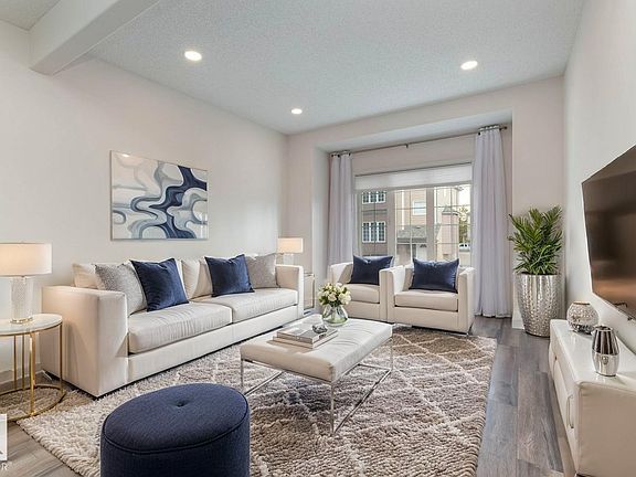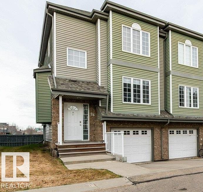 3 BEDROOM END-UNIT...IN VILLAGE DE MIRABELLE...DOUBLE/TANDEM GARAGE....CONVENIENT UPSTAIRS LAUNDRY...Over 1300 sq ft of living space. Main floor boasts open-concept living with large family room, 2pc bath, Kitchen with pantry, lots of counter space, peninsula, and spacious dining area. Walk out the sliding patio doors and enjoy the outdoor balcony + gas line for BBQ. Upstairs, there are 3 spacious bedrooms, 4pc bath & Laundry too. The primary bedroom has walk-through closets & 3 pc ensuite. The double tandem garage has tons of space with lots of additional side storage plus interior water tap & floor drain. Also roughed-in for central vac. Other upgrades include paint, luxury vinyl plank flooring, appliances, hot water tank, furnace, and CENTRAL AIR CONDITIONING. Great location, within walking distance to shopping, schools and all amenities offering easy access to Highway 2 and the airport. ~!WELCOME HOME!~