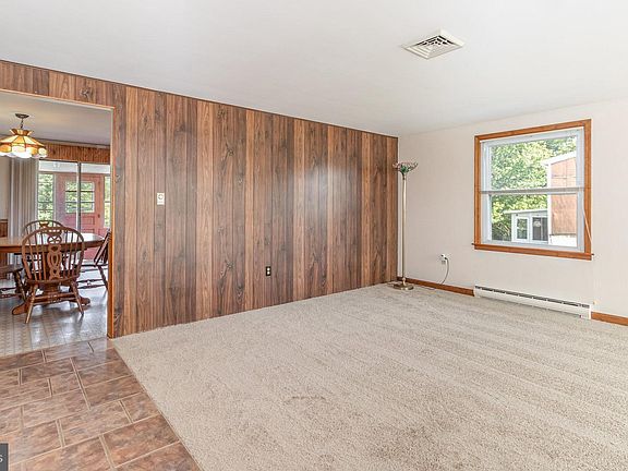 Discover the comfort and charm of this freshly painted 3-bedroom home set on half an acre. Step into the spacious living room featuring a vaulted ceiling and an abundance of natural light. The large eat-in kitchen opens directly to a screened-in sun porch—perfect for relaxing or entertaining while overlooking your private, half-acre lot. Three bedrooms and a full bath complete the main level. The partially finished lower level offers a versatile recreation room with a convenient walk-out to the backyard. You will also enjoy your long driveway for extra parking for guests which leads into your one car garage.