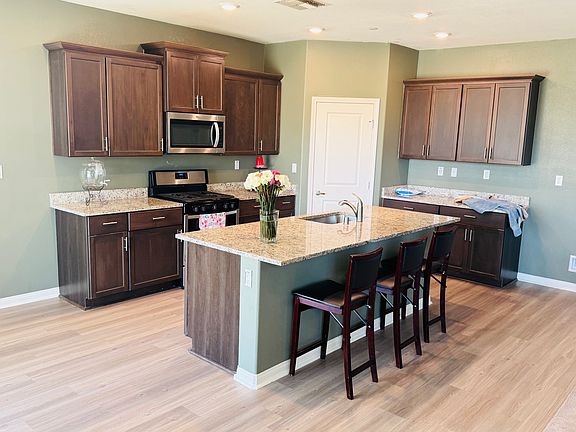 Large and fenced backyardHigh ceilingsSpacious kitchen cabinetsWasher and dryer hookupsBeautiful kitchen islandCeiling fansLaminate and carpet flooring