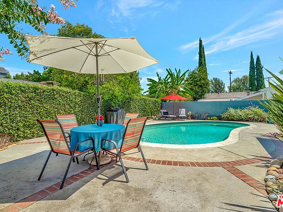 Your picture-perfect haven awaits at the end of a peaceful cul-de-sac, surrounded by gardens and sunshine. This pristine single-story Ranch blends timeless character with modern comfort, offering 1,722 sq ft of sunlit living space framed by oversized picture windows and original refinished oak hardwood floors. The newly landscaped wraparound yard creates a warm, storybook welcome with a cottage-style pollinator garden filled with seasonal color, hummingbirds, and butterflies.Inside, the generously sized living and dining rooms flow into a spacious kitchen with abundant cabinetry, stainless steel appliances, and a cheerful breakfast nook. A private bedroom wing features two generous bedrooms and a refreshed hall bathroom with original charm. The large family room includes its own entrance and a remodeled en-suite bath, creating flexibility for a guest suite, office, studio, or optional third bedroom, with the ability to open the floor plan even further if desired.The expansive 7,101 sq ft corner lot offers true California living with a classic sparkling pool, patio, lanai, newly rebuilt deck, dog run, lemon tree, garden area, and storage shed. Additional highlights include a dedicated laundry room, extensive storage, a new high-efficiency 17 SEER A/C system, and a full two-car garage with ADU potential.Surrounded by a warm, welcoming neighborhood, with the beautiful Van Nuys/Sherman Oaks Recreation Center just two blocks away, and moments from Trader Joe's, Gelson's, Fashion Square, Ventura Boulevard dining, and award-winning Kester Elementary. Turnkey, charming, and ideally located for effortless everyday living.