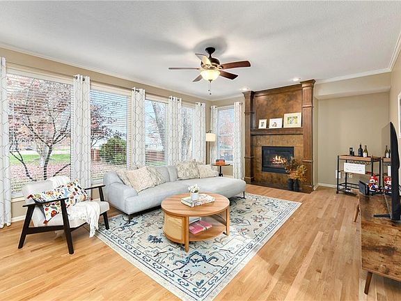 Wonderful 2-owner JS Robinson home on the best cul-de-sac in The Wilderness! Beautiful hardwood floors throughout most of the main level which includes a home office, formal dining, and fireplaces in both the living room and a cozy hearth room. The kitchen is incredible - center island, walk-in pantry, butler's pantry, and gorgeous countertops. The guest bath and laundry room are tucked away with a mud room and boot bench. The garage has two points of entry into the home for flexibility and convenience. Built-in bookcases and crown molding are plentiful. Four good-sized bedrooms all have walk-in closets! The primary suite features two large closets and a luxurious primary bath featuring whirlpool tub and dual vanities. The front bedrom has a private bath and a huge walk-in closet which doubles as a great playroom. Bedrooms 3 & 4 share a Jack-n-Jill bath. Wonderful open back yard with an expanded patio offers plenty of space for entertaining or just unwinding at the end of the day. Perfectly positioned on the best cul-de-sac in The Wilderness with easy access to walkable Blue Valley schools, neighborhood pool, Blue River Streamway trails, fishing lake and science center in a 400 acre nature preserve. The washer, dryer and fridge stay making move-in easy! Heating and cooling are zoned, security system and inground sprinklers are included. There is a huge 9' basement which offers opportunity for expansion. Offering over 3100 finished square feet, there is plenty of room for everyone and there's nothing to do but move in and enjoy!