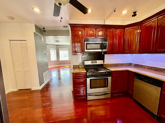 Here comes bright 2 bed/ 1 bath second floor unit in the beautiful vintage look building. Lots of windows bring natural lights into your space called home. Large living room with beautiful lightings, security camera is your option to have. Good sized bedrooms with closets. Fresh paint all through-out. kitchens w/ granite countertop ,cherry cabinets and stainless appliances. Updated bathroom has marble and ceramic tile, cherry hardwood floors throughout. In-unit washer / dryer, individual central heat and air conditioning. Bedroom-sized storage room in the basement. Free parking on the street. Great location with many big stores nearby: Walmart, Home depot, Tony's fresh market, etc. Close to Hanson Parks, bus station, Metra station etc. Available immediately.