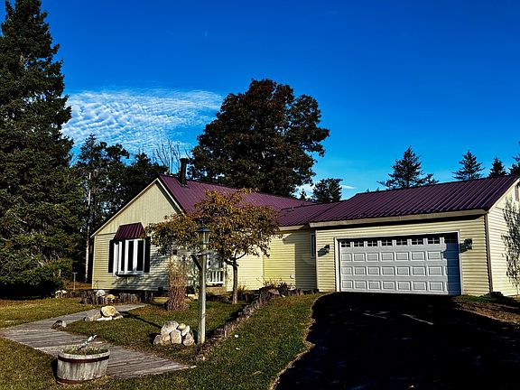Move ''Up North'' remodeled in 2024, this4 bedroom, 2 bath year round home on 10 nicely wooded acres. Updates include flooring, kitchen with stainless appliances, cabinets & butcher block countertops, laundry w/new washer dryer & utility sink, pex plumbing, heating system (Propane) & more. Open living room with cathedral ceiling & cozy wood stove, spacious dining room overlooking new deck. All with attached two car garage with new overhead door & detached 1 car garage w/new metal roof to store those toys and outdoor gear.