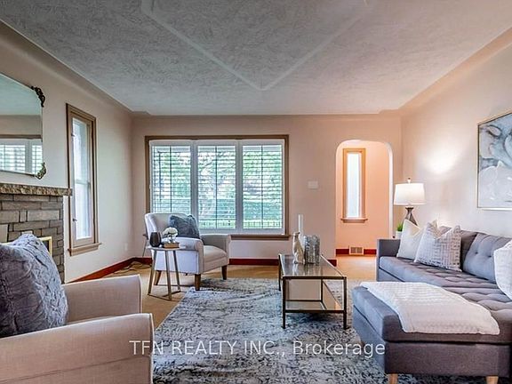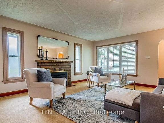 Upper (Main) Floor Only. The basement is rented separately. 3 Bedroom & a Full Bathroom brick bungalow with attached garage and concrete drive. Custom-designed eat-in kitchen with solid oak cabinets, built-in desk, and tons of storage space. Impressive living room with a gas fireplace. Shared Laundry in Basement. Central location, walk to Oaks Park (running track), close to schools, quick highway access, shopping, and bus route. Tenant to pay 75% of total utilities.