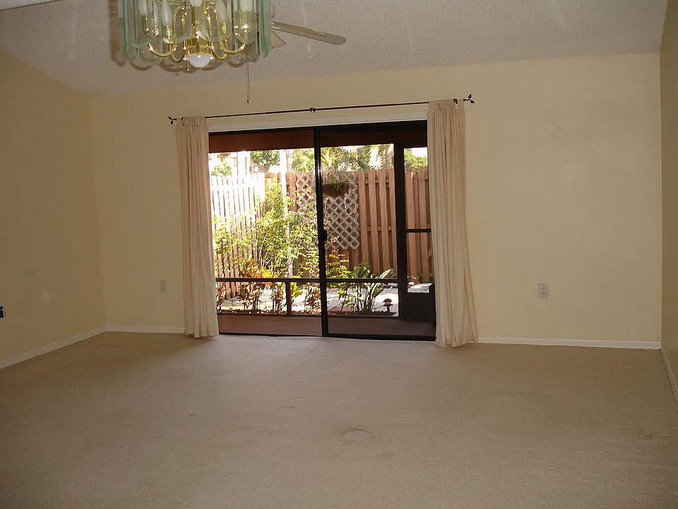It has an oversize Garage, walk in closet, large master suite, laundry room, Modern Track Lighting, Fans in all rooms, Pool, Vaulted Ceiling, Screened in Back Porch, fenced in back yard, storage unit, all exterior maintenance included, Mexican tile roof, washer and dryer.