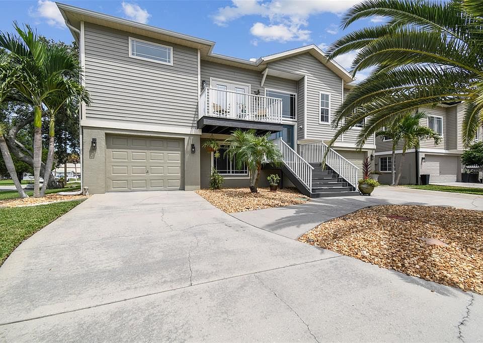 Welcome to this beautifully maintained, elevated block home offering the perfect blend of style, function, and location, just one block from a private deeded boat ramp with quick and easy access to the Gulf! Featuring a new roof (2024), impact-resistant windows, and no HOA, this property is completely move-in ready and worry-free. The massive 1,400 sq. ft. garage is ideal for parking, boat or recreational vehicle storage, and even a workshop space. Inside this freshly painted home, discover a functional and aesthetically pleasing layout with a split bedroom floorplan featuring a large primary suite with his/her closets and a spacious bathroom. The main living area boasts a well-laid out kitchen with updated stainless steel appliances (refrigerator/microwave 2024) and an eat-in area, an expansive open-concept family room, and a separate formal dining area, perfect for entertaining. Outside, enjoy a beautifully landscaped fenced-in yard with both a front balcony and a relaxing, large screened-in back porch with dual french-door entry that spans across the entire length of the home - perfect for a morning cup of coffee or unwinding at the end of the day. Other major updates include a newer HVAC (2019), water softener (2024), hot water heater (2024), and beautiful hurricane-rated front doors (2020). Located close to downtown New Port Richey and convenient to shopping, dining, and medical facilities. Spend your evenings walking to local restaurants or take a golf cart to nearby entertainment spots. This home is the perfect coastal retreat — ready for your next adventure!