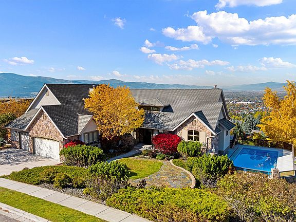Welcome to 5103 Pintlar Mountain Court, situated in the Stone Mountain residential community. This well-maintained 4 bedroom, 3.5 bathroom home overlooks Missoula’s beautiful and vibrant valley. The mature and well landscaped courtyard brings you to the grand front entry. As you step inside an abundance of natural light filters through the large scenic windows. The ceilings are tall throughout to give you an open and spacious atmosphere. All living is conveniently located on the main level. Full gourmet kitchen with ample storage, fireplace and beautiful views of the valley. The living room and dining room are open with high ceilings, tons of natural light and plenty of space for entertaining or large gatherings. The master bedroom is oversized with access to the balcony overlooking the Missoula Valley. There are two large walk-in closets and en-suite master bathroom. The main floor also features 3 guest bedrooms, 2 of which have guest en-suite bathrooms, one powder room, laundry room and access to the 3 car garage. Off the kitchen you will be amazed by the fully enclosed sunroom with floor to ceiling windows. This sunroom is perfect for hot tubing, gardening, entertaining, relaxing or enjoying the spectacular views. Just outside the sunroom is access to a large open deck that wraps around to a large in ground pool! Downstairs is a fully unfinished basement ready for your creative touch. Bedrooms, bathrooms, recreational space and so much could be an excellent addition to this home. This incredible home has so much to offer. The proximity to restaurants, shopping and parks and more is just minutes away! For more information or to schedule a showing please contact Brittni Hertz at 406-546-8904 or your real estate professional.