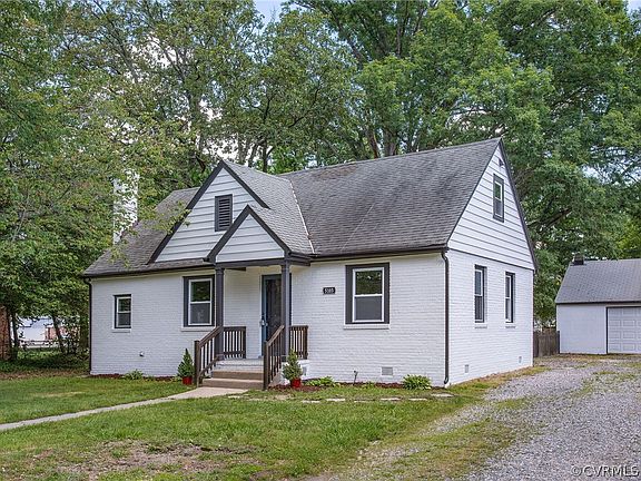 This beautiful, fully renovated Cape is ready for its new owner! This home has been given a brand new kitchen, 2 brand new bathrooms, fresh paint throughout, brand new floors and carpet, and new appliances. The first floor features an open living space that flows into the gorgeous kitchen with granite countertops and new cabinetry. Off the kitchen is a large laundry room that has space to serve as a Butler’s pantry as well. The primary bedroom is located on the first floor and is served by a full bathroom with a double vanity and standing shower. Upstairs you will find 2 more spacious bedrooms and a massive full bathroom. Situated on half an acre, the backyard is huge and offers amazing potential. Enjoy the brand new paved patio and detached 2 car garage. Need a space for a home gym, workshop, or studio? This detached garage has enough space to do all three. Located in eastern Henrico you are only 4 minutes away from White Oak Village shopping centers and 10 minutes from Downtown Richmond!