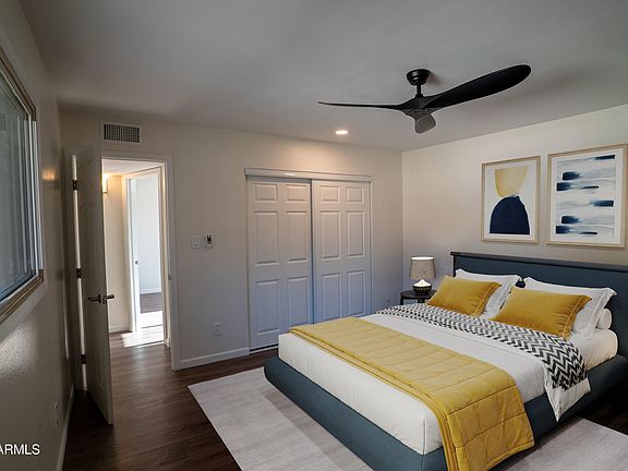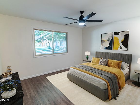 Just 3.5 miles from ASU, this beautifully renovated 3-bed, 2-bath townhome offers a prime location and modern/new upgrades throughout .This split floorplan provides comfort and privacy,  and a brand-new HVAC ensure energy efficiency. Designed by  KUKI, the stunning interior features a brand-new kitchen with shaker cabinets, granite counters, and ALL NEW stainless steel appliances. Fresh interior paint, NEW LVP flooring, and stylish lighting elevate the space. As a coveted end unit, enjoy extra privacy on your shaded patio, just steps from the large community pool!''