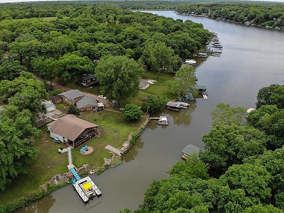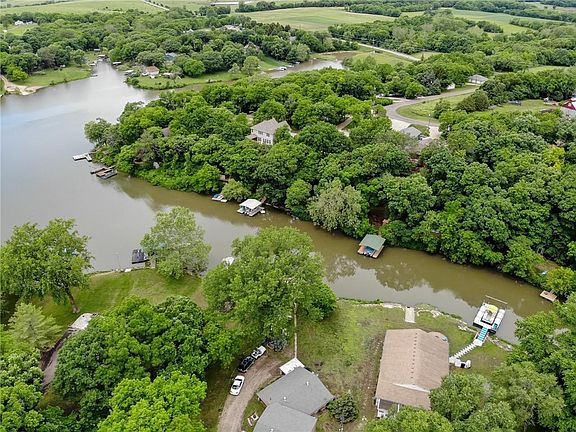 Water Front Home at Beautiful Lake Dabinawa, Level access to the lake. Home sits about 50 ft from the waters edge. New Kitchen with Granite counter tops & Island. Enjoy looking over the water on your on private 42x19 covered porch. Large Master suite. Open concept with vaulted ceilings and canned lighting. All on a acre of ground. 2 car garage with finished space above it with 1/2 bath stubbed in. Includes Boat Ramp & Dock. Come Join The Fun at Lake Dabinawa! Just 15 minutes north of Lawrence.
