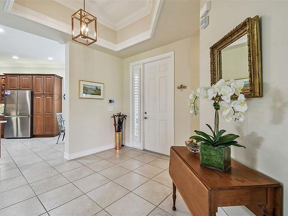 JUST REDUCED!!! OVER $100K in CUSTOM UPGRADES - YOUR PERFECT HOME AT A PERFECT PRICE! HOW WOULD YOU LIKE AN ELECTRIC BILL UNDER $15?!! THIS HOME IS EQUIPPED WITH FULLY PAID FOR SOLAR PANELS! & MUCH MORE! Resort-Style Living at Its Finest! Welcome to your dream home in the highly desirable 55+ resort community of Valencia Lakes! With over $100K in upgrades and additions since purchased in 9/2022 this awe-inspiring home is tucked away on a quiet cul-de-sac with stunning water views, this exquisite “Positano Model” perfectly combines luxury, comfort, and Florida charm. This thoughtfully designed 3-bedroom, 2-bathroom ( OR 2 BEDROOM + DEN) residence with a 2-car garage showcases a spacious, open-concept layout and upscale upgrades throughout. Step through the inviting screened front porch into a grand foyer with tray ceilings, where you’ll be welcomed by elegant light fixtures, crown molding, plantation shutters, and freshly painted interiors. Enjoy water views from the generous living space and your oversized, covered lanai — complemented by a NEW (2024)beautifully paved open-air patio (36 x16) that’s ideal for outdoor entertaining or simply soaking up the serenity. NEW (2024) hurricane shutters on the sliders offer quick and easy storm protection. The gourmet kitchen is a true showstopper, featuring upgraded glazed cabinetry, NEW quartz countertops, a glass tile backsplash, pull-out shelving, recessed lighting, and ALL NEW (2023) stainless steel appliances, sink & plumbing fixtures. A charming dining nook is the perfect spot for casual meals and morning coffee. The split-bedroom floor plan offers maximum privacy. The luxurious primary suite includes two custom walk-in closets with NEW (2023)California Closet systems and a spa-inspired en-suite bathroom with NEW dual vanities and a large walk-in shower. Two additional bedrooms — also with NEW California Closets — and a full guest bathroom that just underwent a $16k RENOVATION (2024) are thoughtfully placed on the opposite side of the home. The well-equipped laundry room features built-in cabinetry and a utility sink, NEW WASHER & DRYER (2023) and leads to a pristine garage with NEW (2023)epoxy floors, overhead storage, NEW (2023)wall-mounted storage cabinets, a soft water system, and a NEW (2023) 220V outlet for electric vehicle charging. In addition this home has a NEW HVAC SYSTEM (2024) and NEW HOT WATER SYSTEM (2024) And here's the best part — this home is outfitted with SOLAR PANELS that are completely PAID-OFF, keeping the monthly electric bill UNDER $15! Valencia Lakes sets the gold standard for active adult communities, offering a resort-style heated pool, lap and resistance pools, state-of-the-art fitness center, steam rooms, saunas, pickleball, tennis, bocce ball, basketball, billiards, card rooms, an internet café, dog park, RV/boat storage, walking trails, and more. With hundreds of clubs, classes, and social events, there’s always something fun and fulfilling to do. Conveniently located just 30–45 minutes from Tampa, St. Petersburg, and Sarasota, this home is the perfect blend of peaceful retreat and city accessibility. Don’t miss your chance to live the Florida lifestyle you’ve always dreamed of — schedule your private showing today!