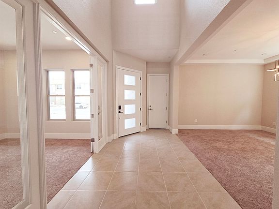 The ground floor features a large, secluded bedroom with an en-suite bathroom and walk-in closet, offering a retreat for guests or extended family. Ascend the staircase to an oversized loft, where sliding glass doors open to a shared balcony with breathtaking mountain views. This outdoor space connects to the palatial primary suite, a private retreat that includes a versatile sitting area or office space. The primary bathroom is a spa-like oasis with dual vanities, a standalone soaking tub, a grand walk-in shower with a bench, and a vast walk-in closet.