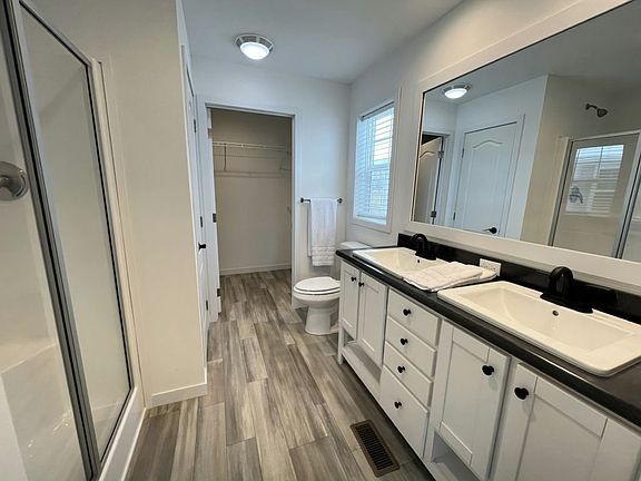 55+ age qualified community. This 2022, 1,512 Sq. Ft. Clayton Built Home is beautifully designed for a comfortable and convenient living space, perfect for those seeking a relaxed and low-maintenance lifestyle. Situated on a corner lot this home has an attractive exterior of vinyl siding, black shutters, a covered carport with an extra long driveway, front porch and energy-efficient windows. Upon walking into the home, you are greeted with a spacious living room, full of natural southern and western light, providing a cozy and functional space for relaxation or entertainment. The Master Bedroom is located at the front of the home, private from the two spare rooms and full guest bathroom that are located off of the kitchen. It features an en suite bathroom separated by a space saving sliding barn door, a large shower, walk in closet, linen closet and double vanity. The kitchen includes energy efficient black appliances - refrigerator, stove/oven, microwave, disposal, dishwasher and stainless farmhouse sink! The large island with seating allows ample space for preparing meals. Enjoy the view of our professionally maintained Golf Course from your kitchen table or better yet, out on the large rear deck with your family and friends. Call or Text to set up a private tour! As a resident of our 55+ age qualified community you can enjoy the benefits of our clubhouse which hosts various community and private activities. It includes a large banquet style area, full kitchen, washrooms,