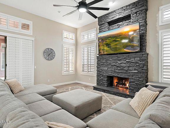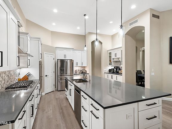 From the moment you walk through the beautiful front door, you will appreciate this bright, open, gorgeous home which has been completely remodeled and refurbished in 2022. This 4 bedroom, 2 ½ home is located in the highly desired Triple Crown subdivision with no homes behind. The stunning kitchen features a large island with extra storage cabinets, stainless steel appliances & hood, gas range, double oven, walk-in pantry, & built-in bar area. The oversized primary bedroom has a sitting area with access to the backyard. The master bathroom has been beautifully remodeled and has 2 walk-in closets. You will enjoy the backyard pool and spa, large covered patio with misters, grass area, and additional artificial turf area at the side yard. Other features include a brand new HVAC in 2024, new roof resurfaced in 2024, 4" shutters and ceiling fans throughout, laundry room with custom cabinets, 3-car garage with epoxy floors & built-in cabinets.