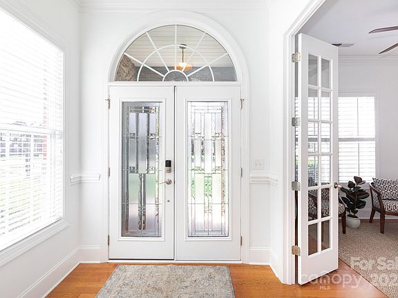 Extensive crown moldingFormal living and diningFoyer with nicheAmple driveway parkingSolid surface countertopsWalk-in pantryArched openings