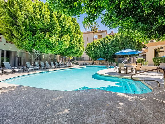 Located in the highly sought-after Biltmore neighborhood, this end unit condo offers one of the best locations in all of Phoenix! Just steps out the side gate to The Collins, Hava Java, Safeway, Matt's Big Breakfast, and more! This immaculate condo boasts the largest one bedroom floor plan offered in the Meridian community! Inside you will find an oversized living room / dining area and an oversized primary bedroom with huge walk-in closet. This home has been well maintained and has a newer HVAC. The gated community includes underground parking, elevators, heated pool/spa, fitness center, sauna, gas grills, & 24/7 security.