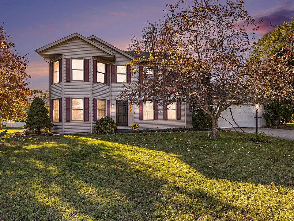 Welcome home to 51041 Grapevine Court! Tucked away on a quiet cul-de-sac corner lot in a friendly neighborhood. This beautifully updated 4-bedroom, 2.5-bath two-story offers 2,428 SF of comfortable living space and a fantastic location close to Notre Dame and convenient to the US-20 Bypass. Step inside through the new entry door to find all-new flooring throughout, including carpet, laminate and luxury vinyl plank, plus fresh interior paint for a clean, move-in-ready feel. The main floor features a spacious den/flex room—perfect for a home office or playroom—along with a formal dining room and bright, open living spaces ideal for entertaining. Upstairs, the fifth bedroom has been thoughtfully converted into a convenient second-floor laundry room. The partially finished basement provides additional living space or room to expand, while the two-car-attached garage offers great storage and everyday convenience. Enjoy peaceful evenings on the large, private deck. Harvest the bounties of the mature fruit trees and garden area. Don’t miss your chance to make this beautifully refreshed home yours!
