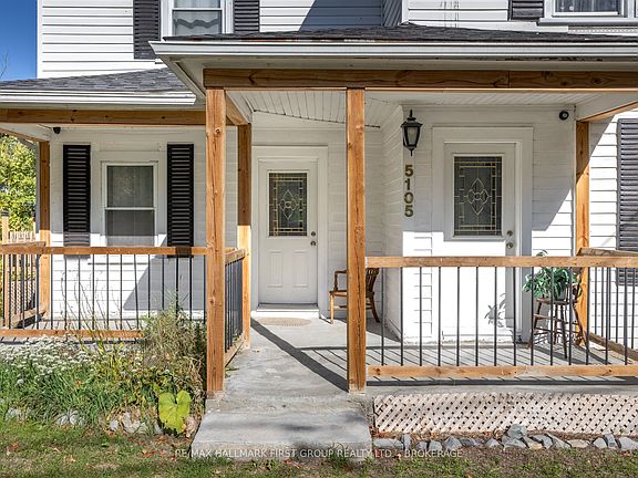 5105 Battersea Road a charming, fully updated 2-storey farmhouse nestled in a peaceful lakeside community, just 16 minutes north of Kingston and Highway 401. Sitting on a spacious corner lot, this home perfectly blends timeless rustic character with fresh modern finishes.Inside, the heart of the home is a beautifully renovated kitchen featuring warm butcher block countertops, flowing seamlessly into the dining room highlighted by a striking exposed brick wall. The cozy living room adds even more charm with its barn board accent feature. The main level also offers a versatile bedroom or den and a stylishly updated 4-piece bathroom.Upstairs, youll find four additional bedrooms and a bright 3-piece bathroom, providing plenty of space for family or guests. Significant updates completed in 2022 include: a brand-new kitchen, refreshed bathrooms, second-level flooring, updated trim and doors, new paint, propane furnace, central air, hot water tank, and a heat pump ensuring comfort and peace of mind for years to come.Step outside to enjoy your morning coffee on the new back deck surrounded by nature, or relax on the welcoming front porch. With propane hook-ups ready for a gas fireplace, two driveways for added convenience, and endless character throughout, this move-in-ready home is a rare find.