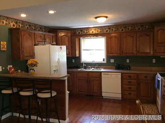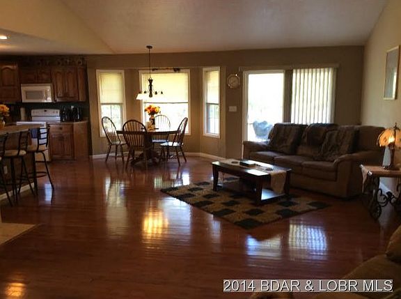GREAT LOCATION BETWEEN CAMDENTON & LEBANON....Only 8 miles south of Camdenton. Custom built by builder for personal use...QUALITY throughout! Sits on 1 acre with adjoining 1 acre available (water & electric to lot). Property is cleared and manicured. Beautiful home with REAL HARDWOOD throughout living room, dining and kitchen. Mint condition! Home has a huge master suite, Separate utility room, tile flooring, vaulted ceiling, fireplace, private deck and more. Driveway was just chatted. Also comes with 8x12 storage building w/concrete floor. This is a BUY!