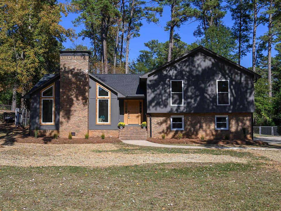 Step inside this stunning mid-century modern home, completely remodeled with timeless style and modern elegance. This one-level gem features soaring ceilings, wood flooring throughout, and a cozy fireplace that creates the perfect gathering space. The sleek kitchen showcases quartz countertops, a large island, and contemporary finishes. Updated bathrooms offer a fresh, luxurious feel. The finished basement provides versatile space ideal for a home office, studio, or bonus room. Enjoy outdoor living on the expansive back deck, and take advantage of the convenience of a two-car garage. A perfect blend of style, function, and comfort!