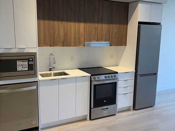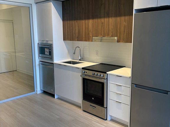 Sleek kitchenQuartz countertopsLarge closetEnsuite bathLarge balcony