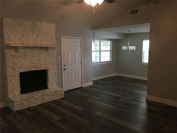 Nicely updated 3 bedroom, 2 bath home features upgraded kitchen with new stainless appliances including refrigerator, dishwasher, built-in microwave and gas stove/oven, plus new counters and stainless double sink. Fresh paint, new windows and blinds, new light fixtures and new laminate flooring throughout. Fireplace in the open concept living area with ceiling fan and cathedral ceilings. Washer/dryer connections. Fenced yard. Move in ready.
